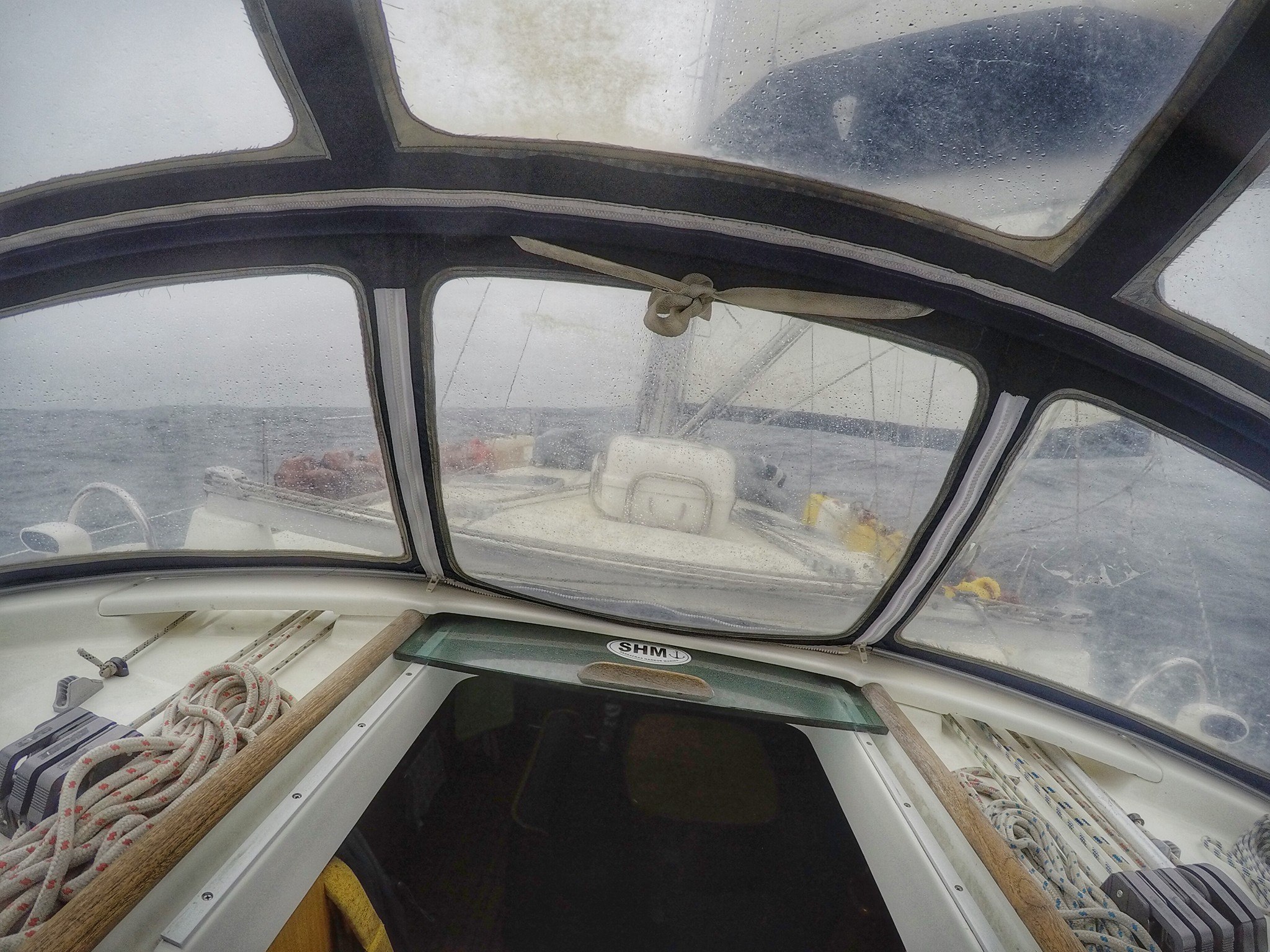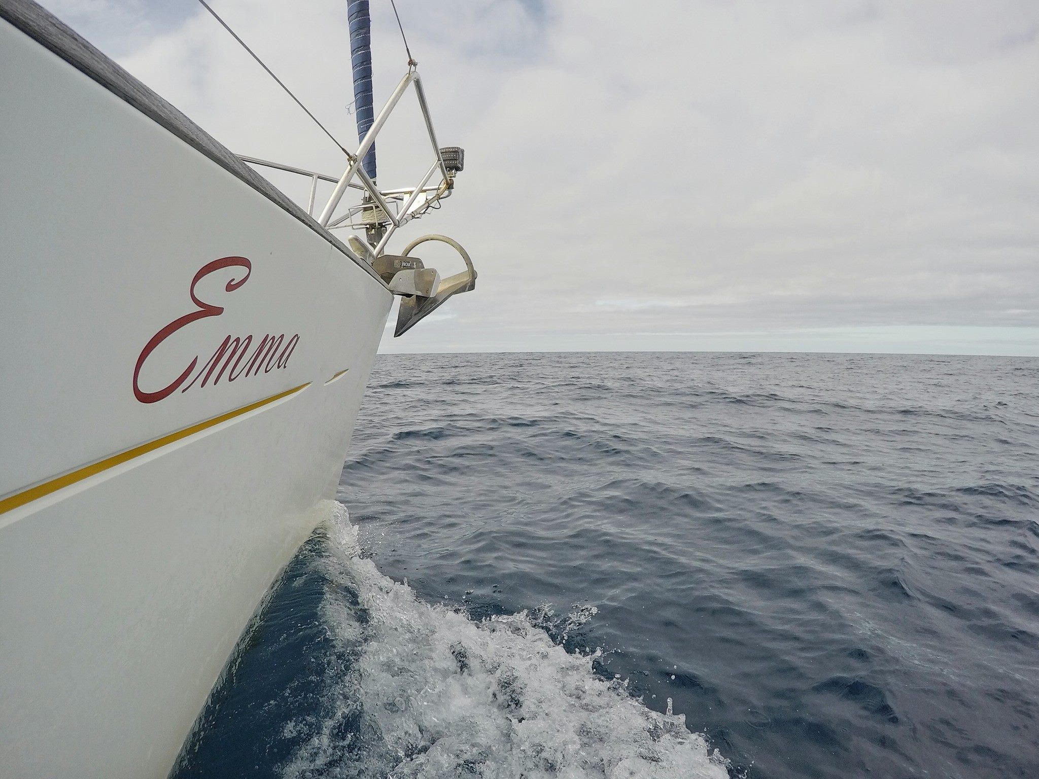 The crossing from Azores was pretty uneventful. We sailed with a reefed main sail all the way, and adjusted the speed by furling/unfurling the genoa. The wind direction was stable, but the wind speed was very variable, constantly shifting between 6 and 12 m/s. We often had to get up several times at night to adjust the sails. Since it was just us two on board, we mostly left the watch-keeping to our sturdy autopilot, the AIS and the radar. If something came within three nautical miles range from Emma, an alarm would sound. This system worked surprisingly well. Other than that, we just poked our heads out through the companionway from time to time to check that everything was OK outside.