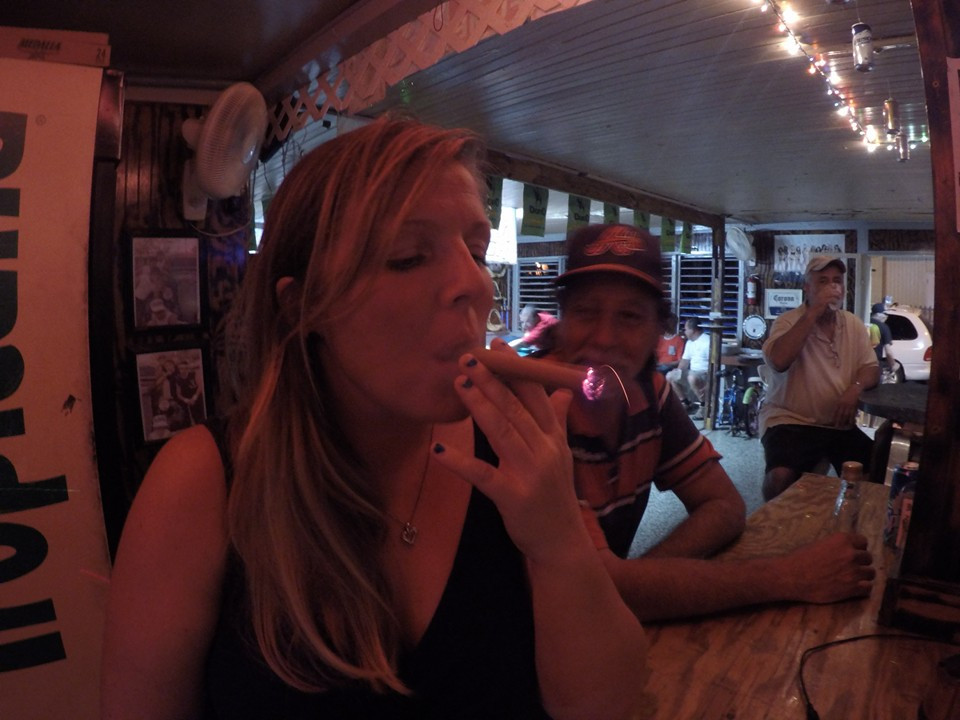 Kristine trying a local $1 cigar.