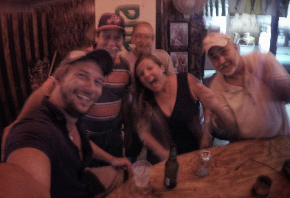 Lots of people giving us advice at the local bar.