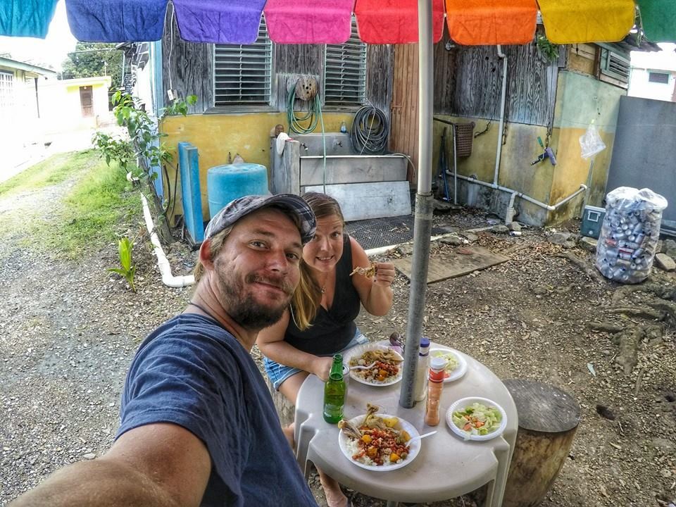 Eating chicken and stuff at the local backyard restaurant.