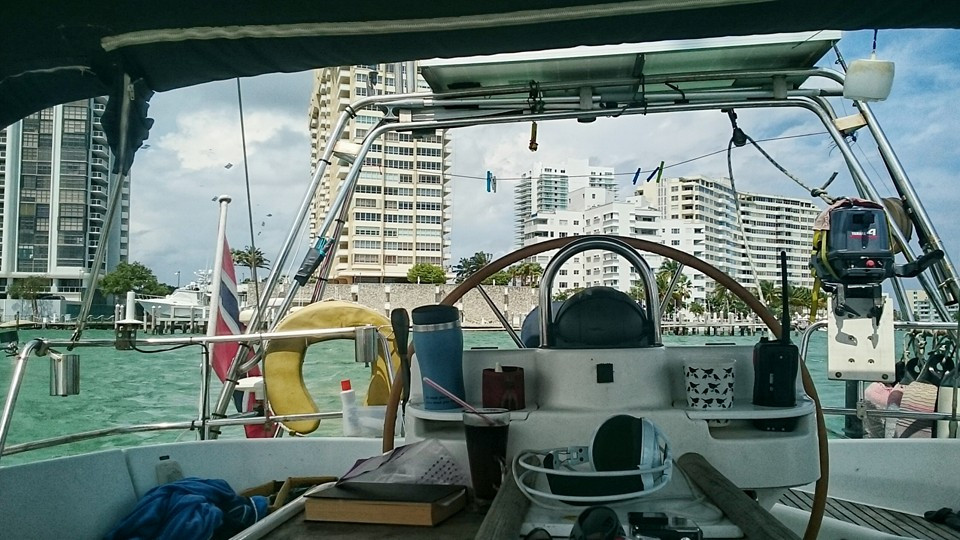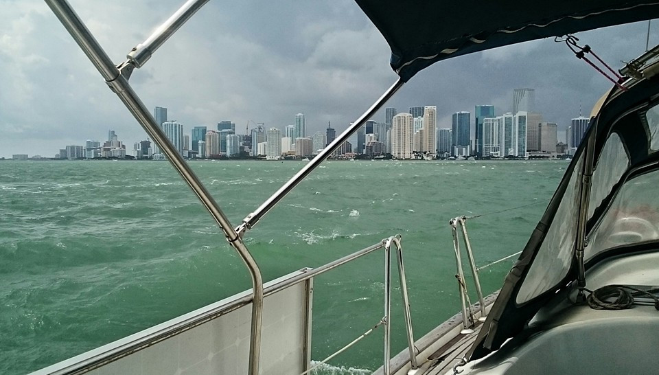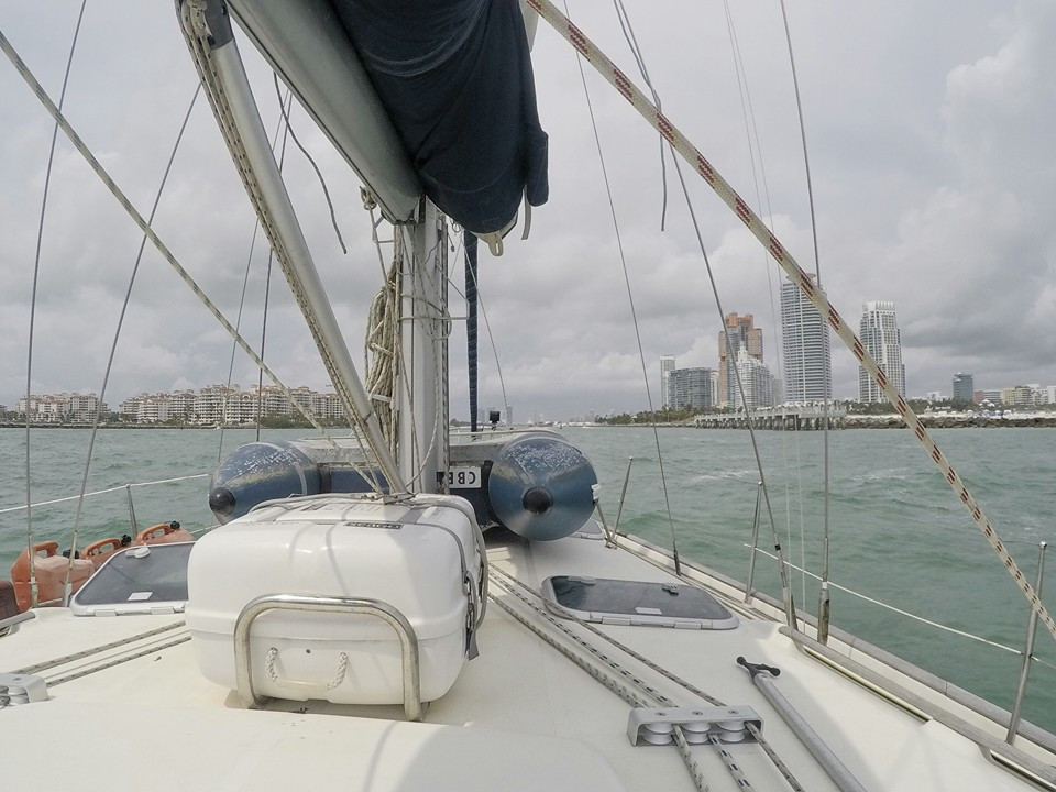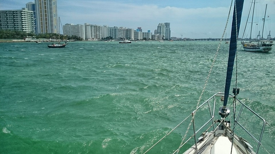 Finally anchored in Miami, after 25 hours from Key West! An ordinary sail with light winds. About forty percent motoring and sixty percent sailing.