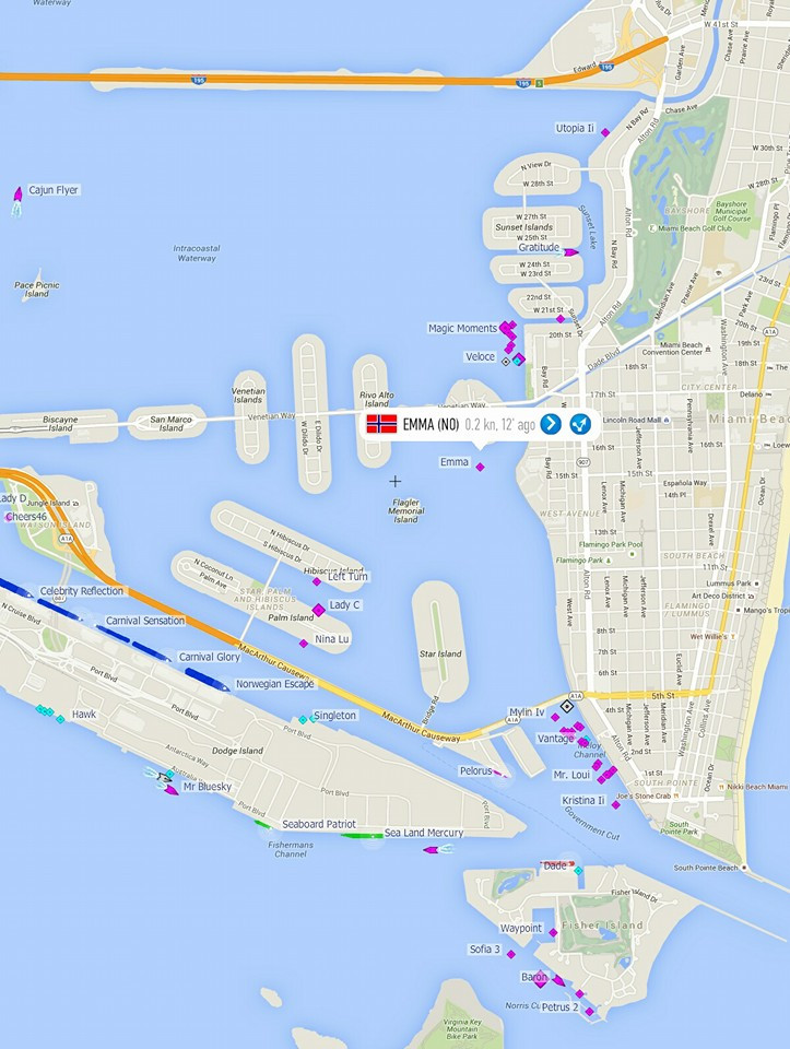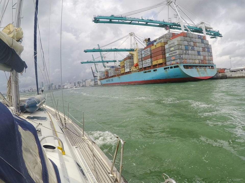 We arrived at the port of Miami around noon. The currents and waves outside the entrance were high, but once inside, it calmed down. Inside the port, the traffic was intense. Jetskis, fishing boats, superyachts, ferries and cargo ships in all directions. At the same time we had to keep a sharp eye on the charts, as you can run aground if you astray just a little bit from the dredged channels.