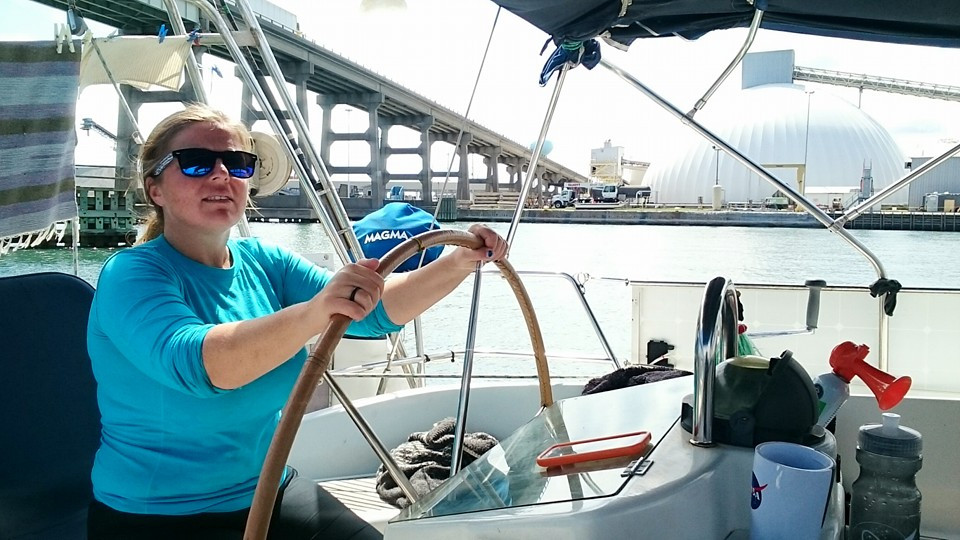 Kristine handling the ropes in a lock.