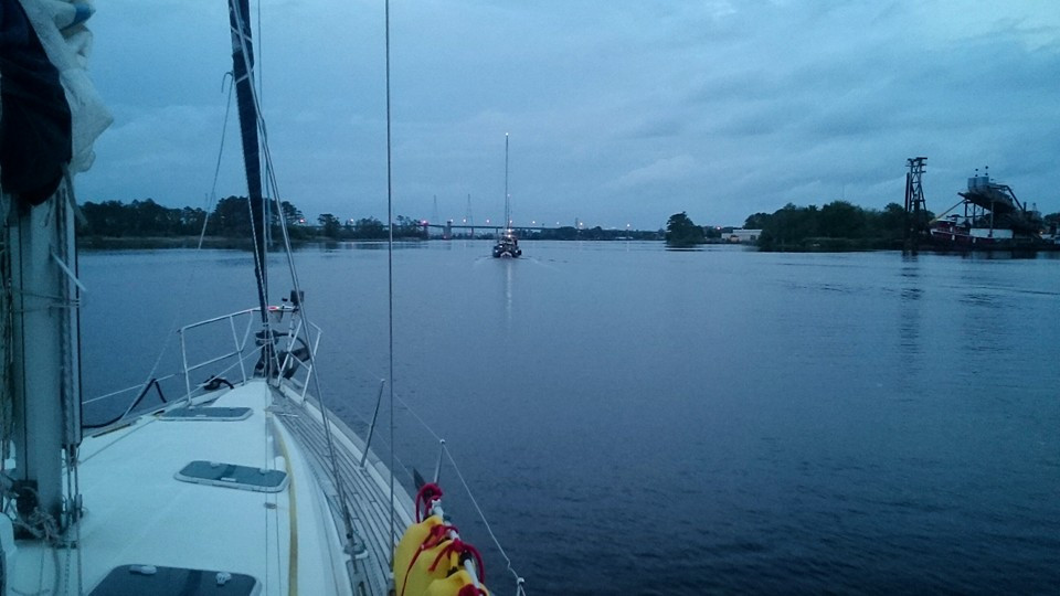 Queing up for a bridge opening.