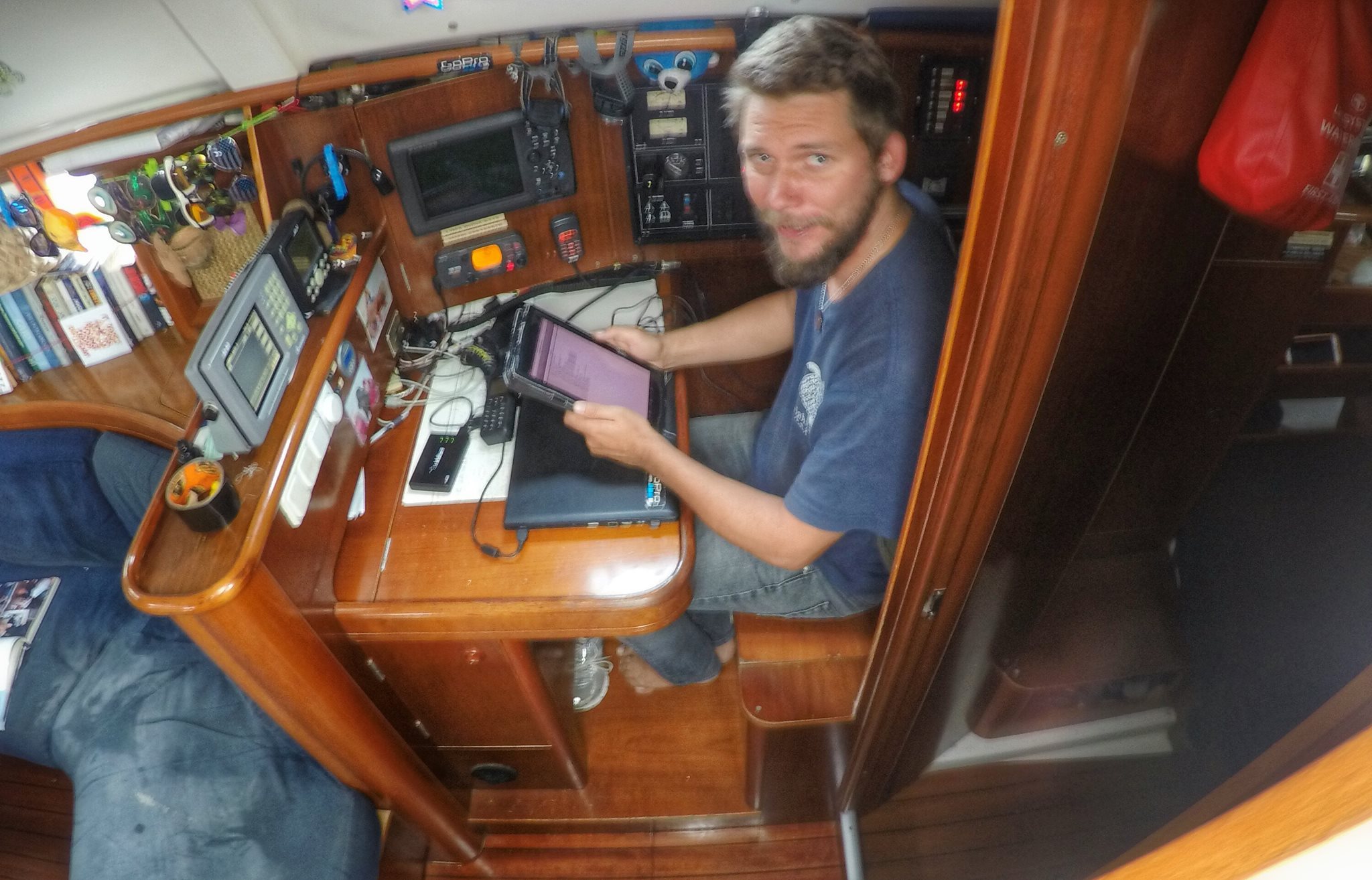 We downloaded Grib weather forecast files every day using our Iridium satellite phone. A system that also worked satisfying. This way we could plan ahead, and didn't get any surprises weatherwise. The forecast is very accurate in a 1-3 day time range. We also regulary received news from home by e-mail. It's amazing that just a couple of decades ago, long distance sailors had to pick up poste restante mail from home at post offices around the world. Today, we can download e-mails instantly or call home from the middle of the ocean.