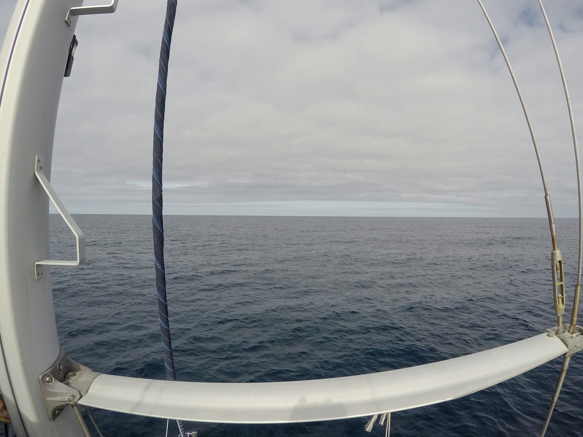 We departed Horta on the isle of Faial in a nice breeze from NE. Since that also was the direction we were headed, we were blown a bit off course in the beginning. As we entered a high pressure system north of Azores, we had to motor for two days to get through it. When we came out on the other side, the wind was NW. For about a week, we had the wind directly in on our port side. Combined with 2-3 meters waves, the boat heeled over and was rocking constantly. Doing anything constructive on board was impossible. We mostly slept, read books and played games on the tablet. Just doing simple tasks like going to the toilet or making dinner was a challenge. Fortunately, we had vacuum-packed a lot of pre-cooked meals before we left Horta.