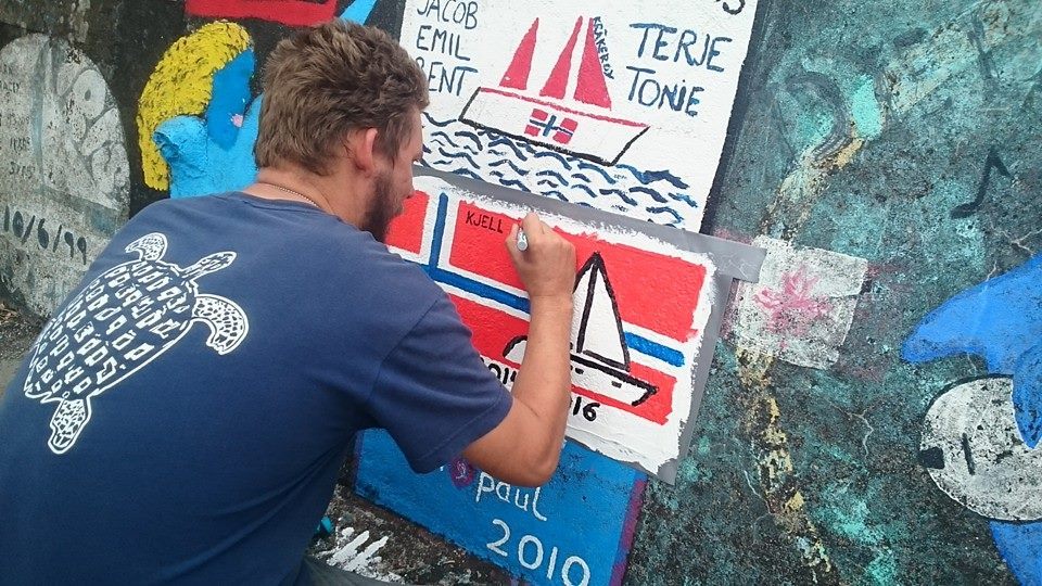Vi har fått namnet vårt på moloveggen og har fiksa det meste på båten. Om eit par timar reiser vi frå Horta. Neste stopp er Dublin, Irland. Matros Rune har mønstra av, så no vert det berre Kjell Arne, Kristine og autopiloten om bord dei komande 1.300 nautiske mila. Vi oppdaterer vår posisjon undervegs på www.jordarundt.net/posisjon.php - men ikkje få panikk om den streikar! ETA Dublin er 7.-8. juli.